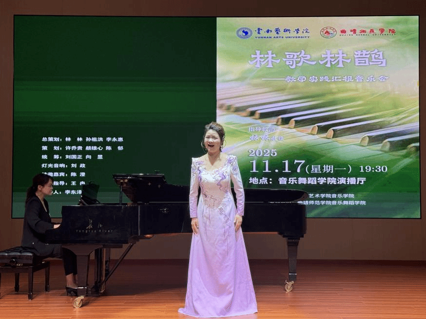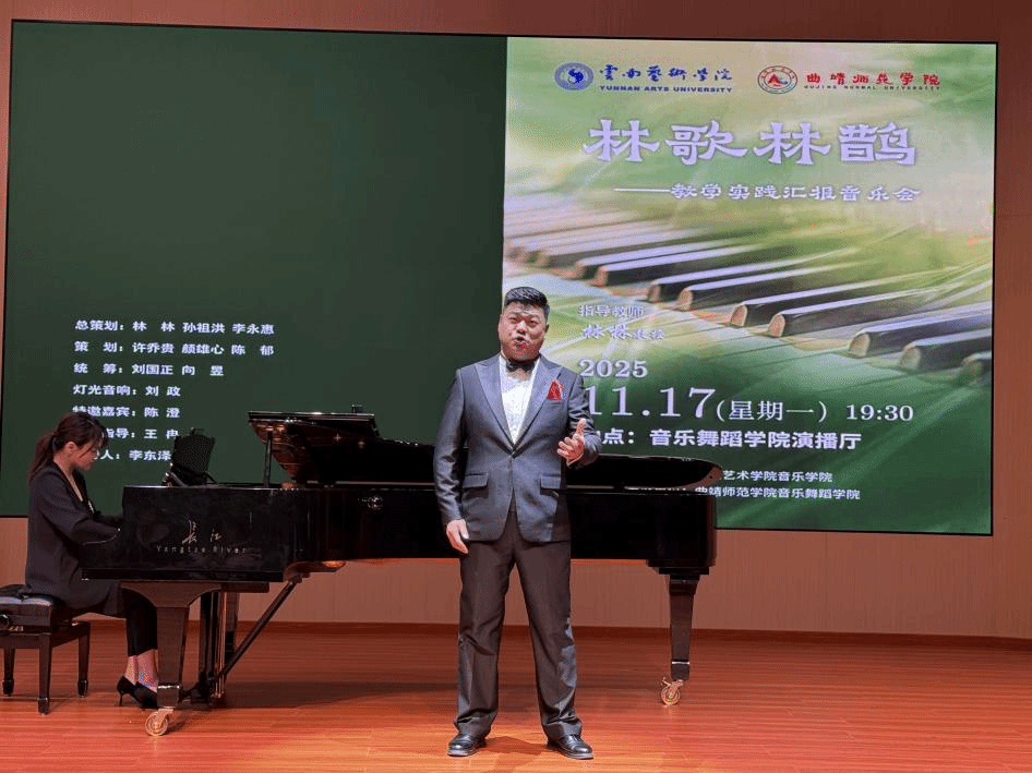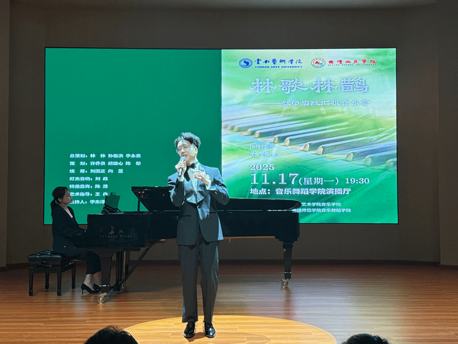 2025年11月17日,“林歌林鹊”——林林教授教学实践汇报音乐会在曲靖师范学院音乐舞蹈学院演播厅圆满举行。此次音乐会由ky开元集团官网入口主办,曲靖师范学院音乐舞蹈学院承办。