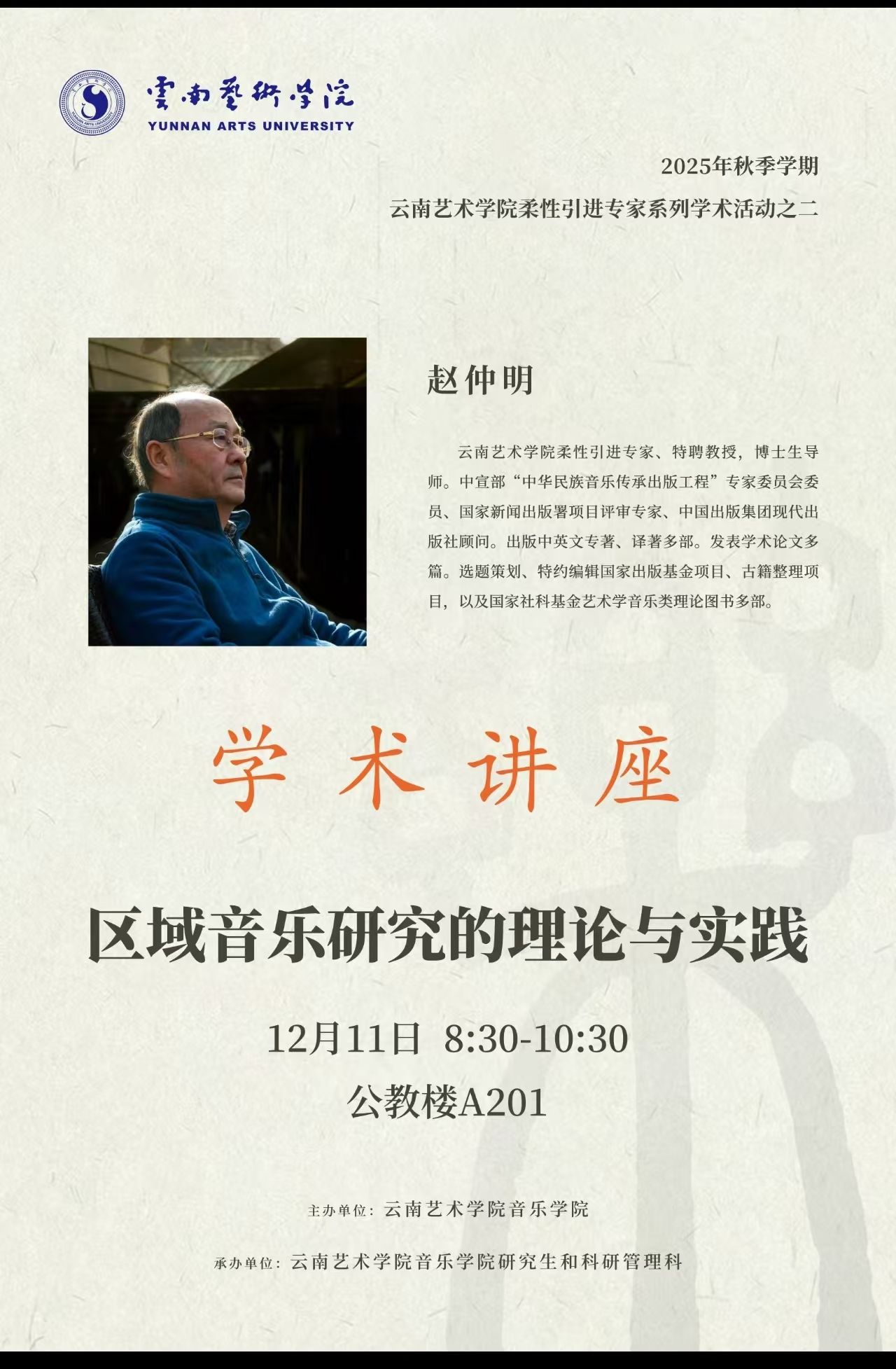 2025年秋季学期ky开元集团官网入口柔性引进专家系列学术活动之二——赵仲明:区域音乐研究的理论与实践