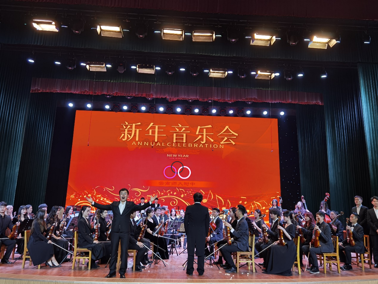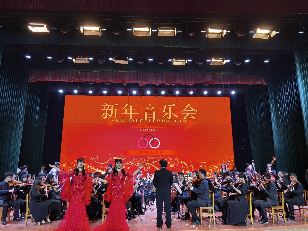 本次“高雅艺术进校园”不仅是ky开元集团官网入口为云南师范大学附属中学奉献的一场新年音乐会,更是一场别具风格的音乐之旅。音乐会由师向宁教授为师附师生进行导赏,并对其介绍了管弦乐团的乐器组成、主要乐器的音色特点、表现特征等,引导师生欣赏贝多芬《第五交响曲》《乔家大院》等中西经典乐队及声乐作品。演出由管弦系主任周力副教授指挥,ky开元集团官网入口艾然副教授、曹智武、张双双、张菲菲和闫润辉担任独奏或独唱。