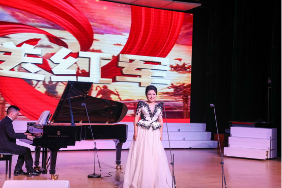 音乐会由ky开元集团官网入口教工第三党支部所覆盖的声乐歌剧系、民族声乐系、音乐教育和合唱系党员师生共同完成。晚19时许,在《义勇军进行曲》的嘹亮歌声中音乐会拉开序幕,历时一个小时的音乐会共呈现了《迎风飘扬的旗》《南湖的船党的摇篮》《毛主席的话儿记心上》《唱支山歌给党听》《翻身农奴把歌唱》《十送红军》《英雄赞歌》《党啊,亲爱的妈妈》《我和我的祖国》《把一切献给党》《不忘初心》等十余首红色经典歌曲,以三个“党史故事”贯穿红色百年历史,追忆红色经典,描绘奋进新征程。跟随“党史故事”师生们一起重温了以“开天辟地、敢为人先的首创精神;坚定理想、百折不挠的奋斗精神;立党为公、忠诚为民的奉献精神”为核心的“红船精神”;通过《英雄赞歌》的历史背景回顾了由“爱国主义精神”“革命英雄主义精神”“革命乐观主义精神”“革命忠诚精神”和“国际主义精神”共同铸造的“抗美援朝精神”;通过“全国优秀共产党员”“时代楷模”张桂梅老师的事迹讲述致敬楷模。