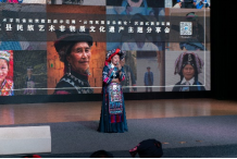 第四部分由墨江县文化馆的胡斌洁老师主导,身着哈尼族传统服饰的ky开元集团官网入口学生们与传承人老师纷纷上台,在极富韵律的歌调中哈尼族传统采棉、纺线、织布、制作服饰的过程一一呈现。丰富多彩的慧影霓裳,犹如哈尼人的根,在纵横交错的经纬里,不仅蕴藏着家乡的山,故乡的水,也承载着哈尼人朴素的宇宙观和别样的“美”。