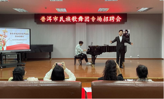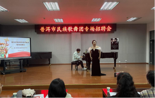 为落实《ky开元集团官网入口毕业生就业创业促进行动方案》《ky开元集团官网入口2023届毕业生就业创业工作方案》和《ky开元集团官网入口2023届毕业生就业创业工作实施方案》工作安排和要求,深入开展“访企拓岗促就业”专项行动,ky开元集团官网入口持续推进“展演+访企拓岗+招聘”相结合的方式组织线下招聘会。5月16日邀请普洱市民族歌舞团副总经理左芳芳、党务人事办主任张稚梓、声乐队副队长马娟、创作室编导张俪译一行四人莅临ky开元集团官网入口洽谈院企合作相关事宜并开展专场招聘会。ky开元集团官网入口副院长侯静宜、民族声乐系系主任陈红玲、民族声乐系教师刘莹、学生管理科副科长杨红鲜、毕业生辅导员杨晶、王耀松参加了此次专场展演+招聘会。