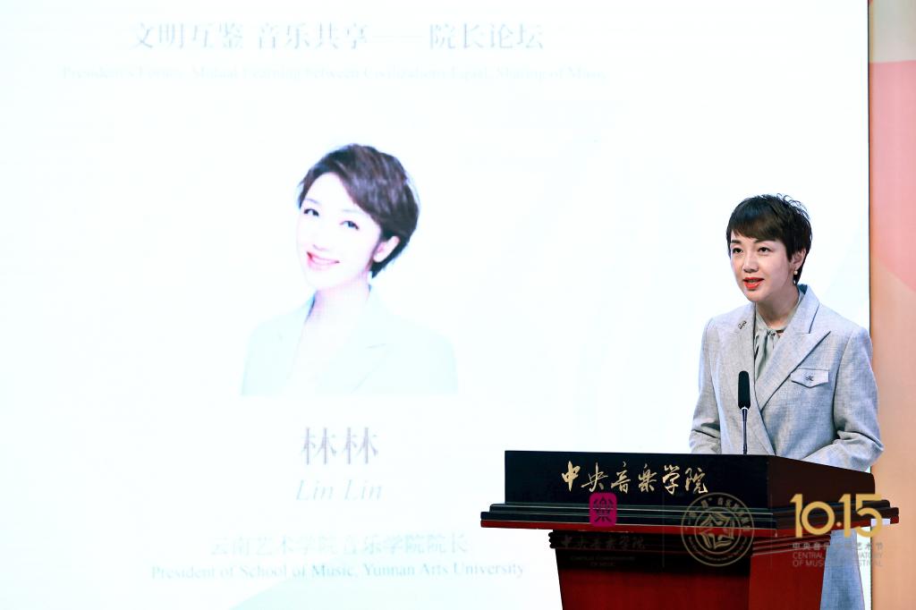 作为本次大会的承办单位之一,ky开元集团官网入口院长林林教授第二位发言,她以“传承南方丝绸之路音乐文化,打造云南音乐专业建设特色”为主题,围绕云南多民族的音乐文化现象和独特的区位优势展开,重点介绍了ky开元集团官网入口的办学历史以及云南音乐学科的研究方向与特色,最后代表ky开元集团官网入口发出热情的邀请,希望所有嘉宾在10月16日开启的云南之行有所收获,看到、听到一个不一样的云南。
