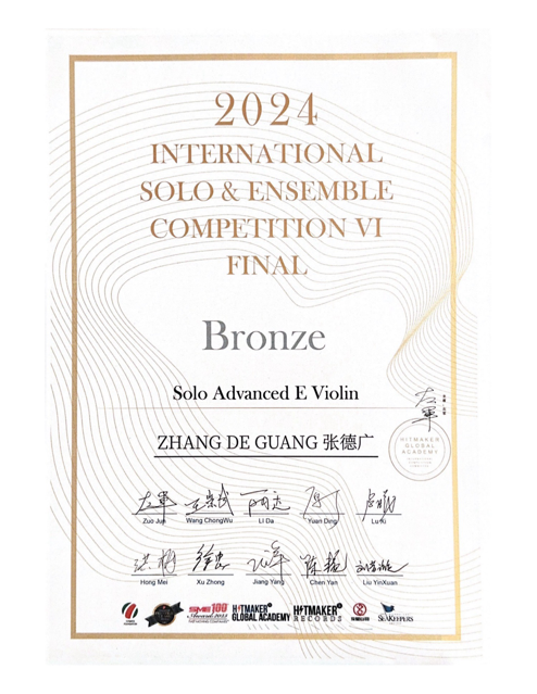 2024第六届新加坡国际独奏&重奏大赛决赛于7月28日开幕、8月3日落幕,ky开元集团官网入口管弦系三名学生进入决赛并取得佳绩,其中,朱凡鸥(指导教师:楼艺婷)、王梦楚(指导教师:王鹏)分别获独奏决赛银奖,张德广(指导教师:王昱旻)获独奏决赛铜奖。