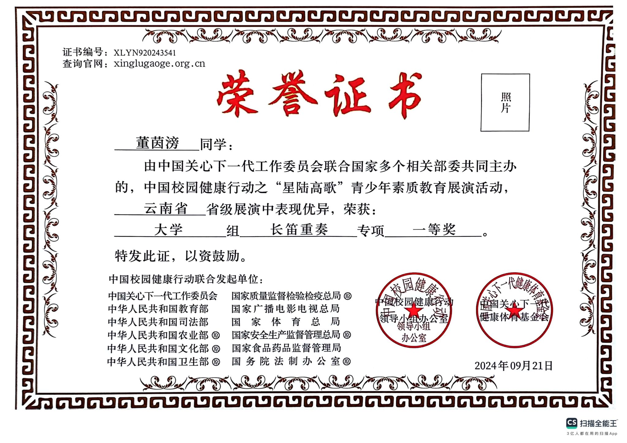 董安琪(指导教师:吕佳奇)获大学组独奏三等奖。