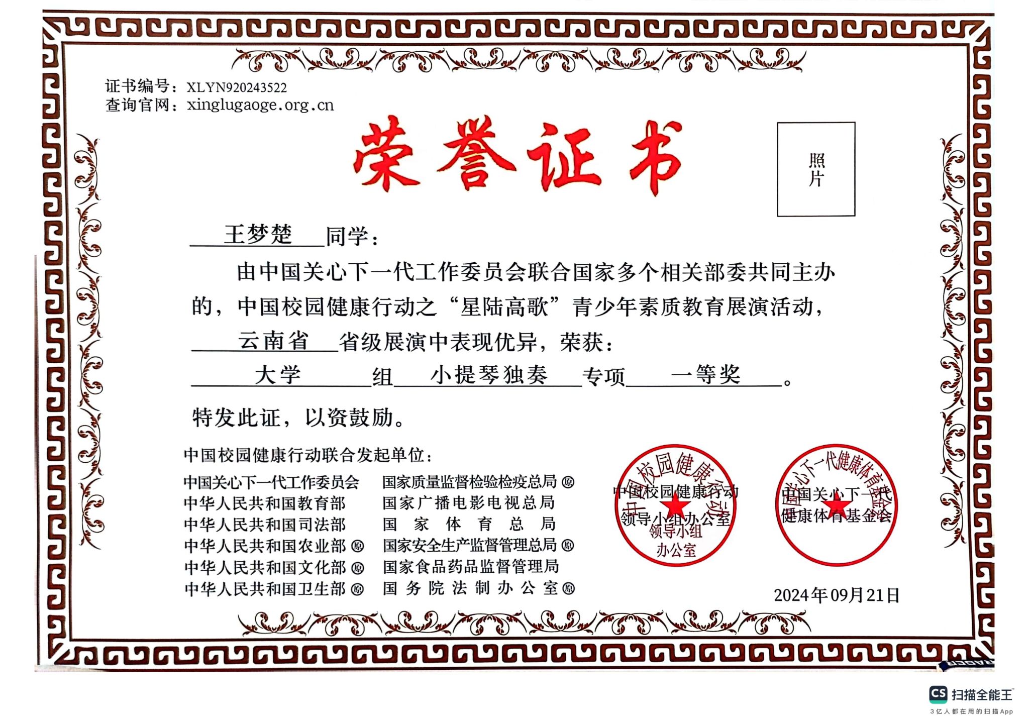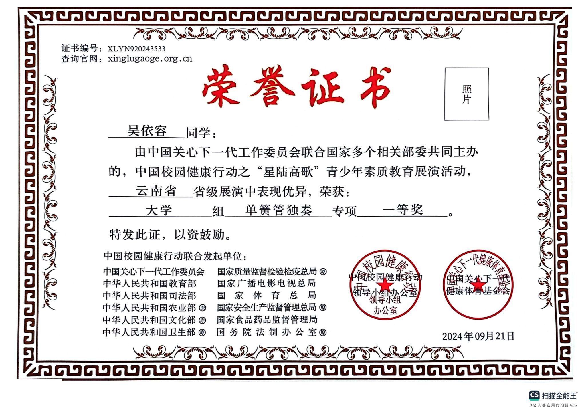 星陆高歌第九届校园交响音乐全国展演暨青少年素质教育展演(大学专业组)于7月3日在昆明顺利举办。ky开元集团官网入口管弦系19名学生进入决赛并取得佳绩。