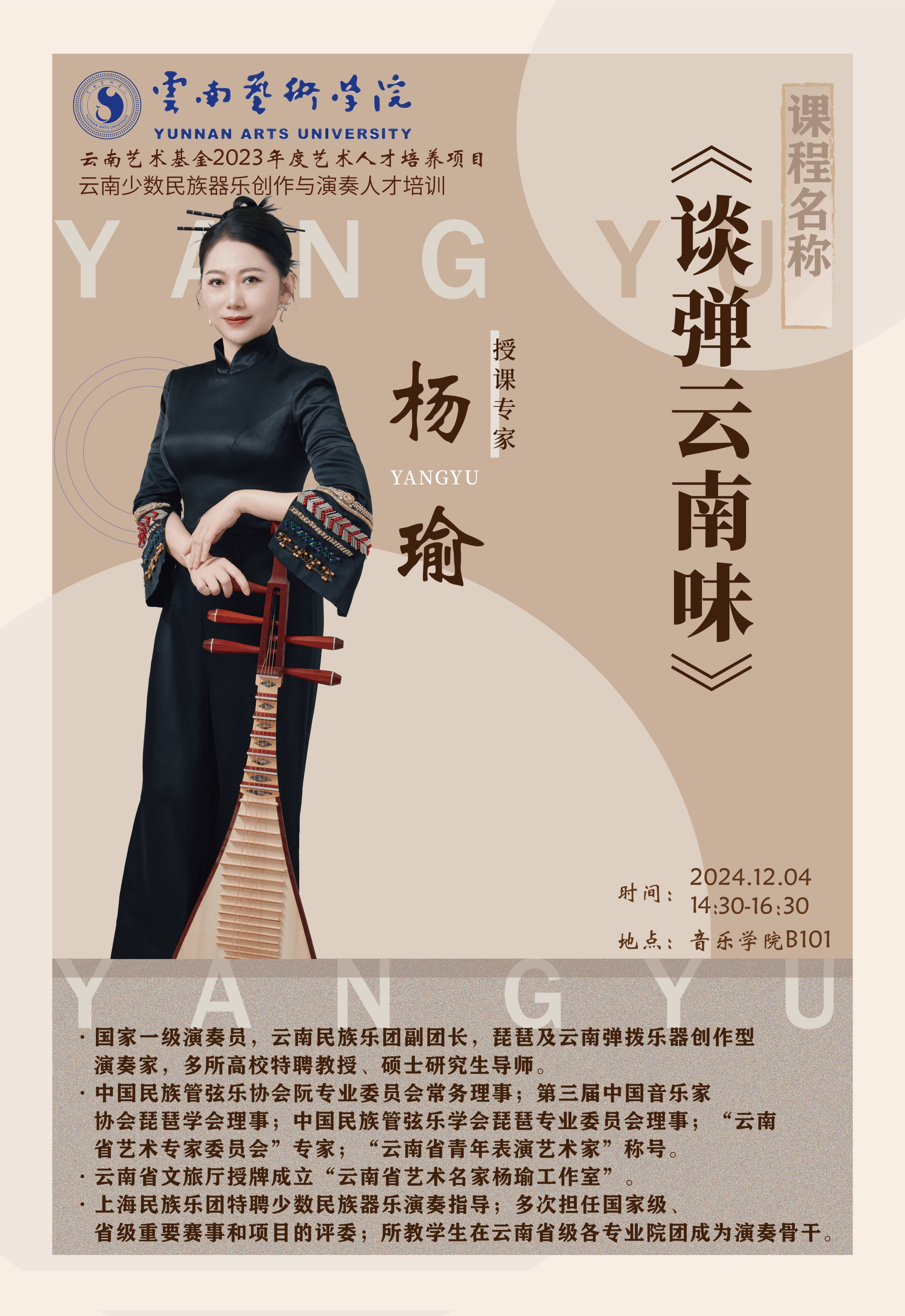 云南艺术基金2023年度艺术人才培训项目云南少数民族器乐创作与演奏人才培训——《古韵今声 阮乐之美》