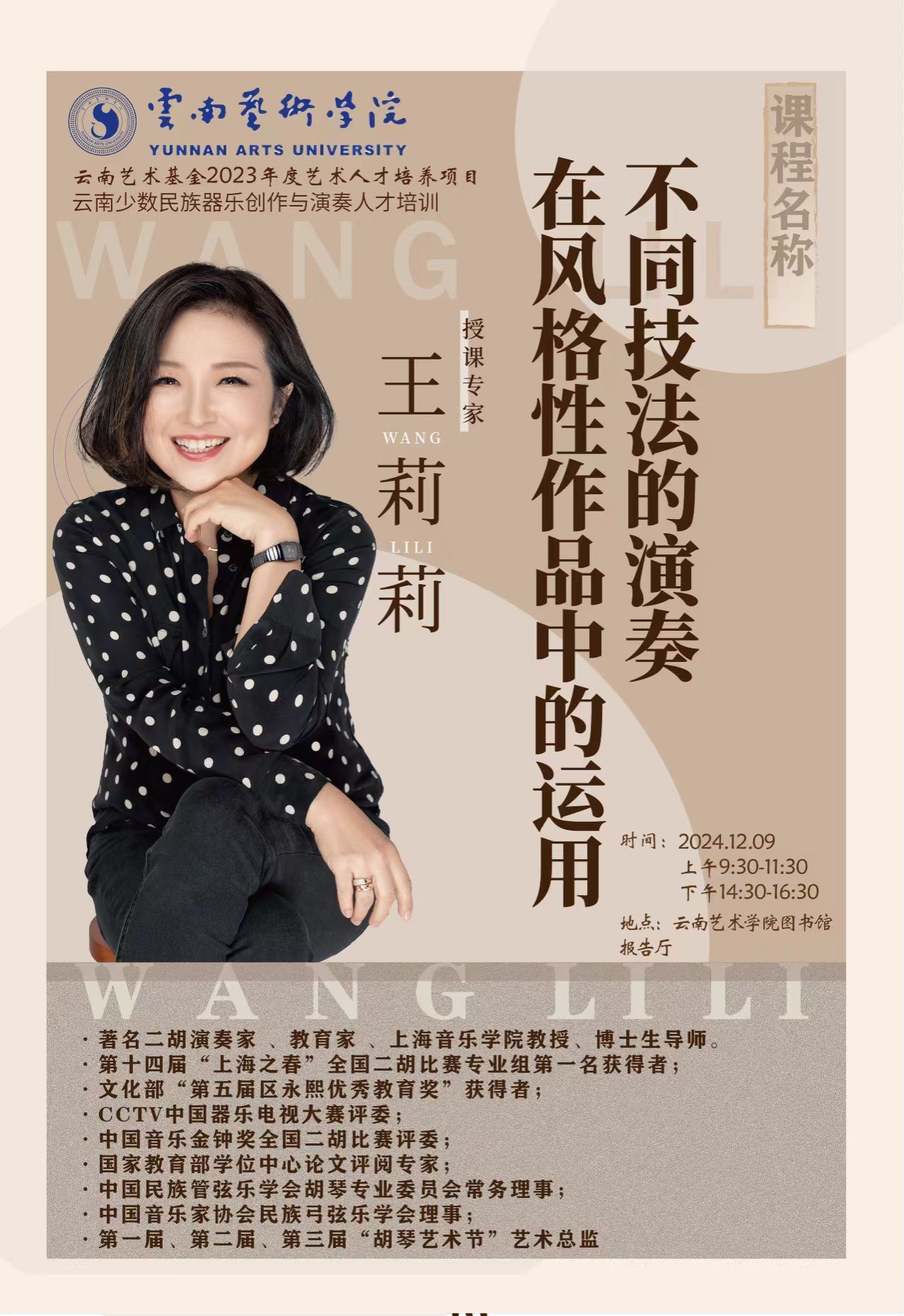 云南艺术基金2023年度艺术人才培训项目云南少数民族器乐创作与演奏人才培训——《不同技法的演奏在风格性作品中的运用》