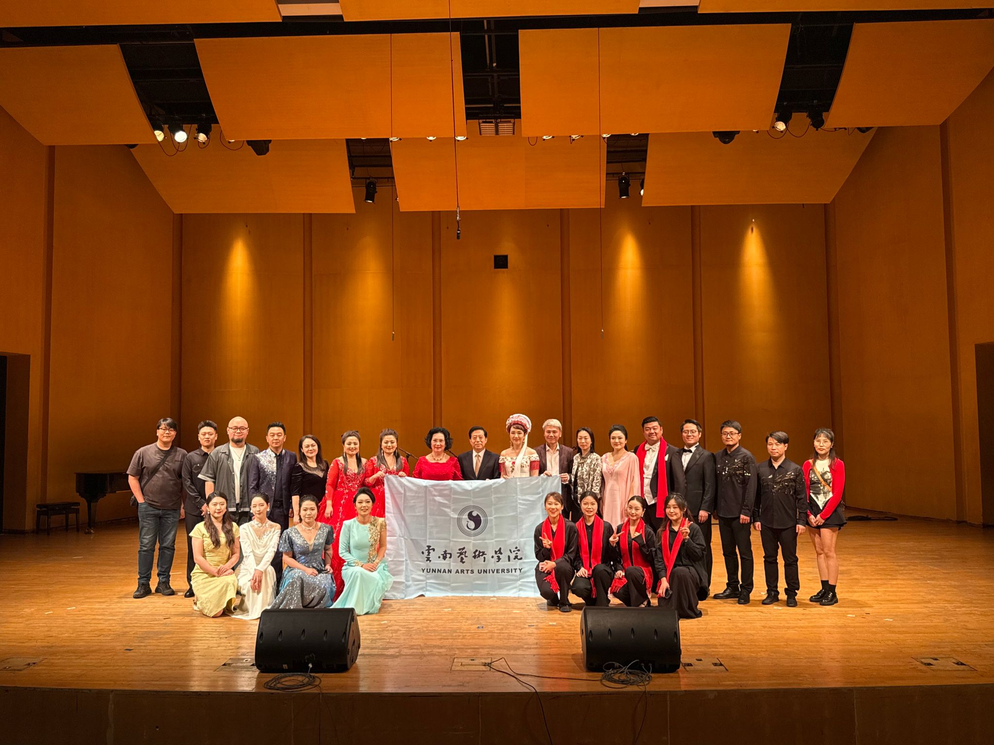 参会期间,ky开元集团官网入口的师生们应泰国玛希隆大学邀请,举办了一场中泰建交50周年“中泰友谊”新春音乐会,中国驻泰国大使韩志强,中国驻泰国大使馆公使衔参赞常禹萌,国际奥委会委员、泰国爱乐乐团董事会主席坤仁帕塔玛出席音乐会,韩志强及坤仁帕塔玛发表了致辞。音乐会上,ky开元集团官网入口师生代表带来了极具云南特色的民歌、民族器乐表演。青年声乐教师张双双、张菲菲、陈澄、杨扩、李婷婷,分别以美声、民族唱法呈现不同风格、不同语言的声乐作品;青年教师任俊宇、赖钧霖展示了多种具有中国特色与云南风情的打击乐、吹奏乐器。
