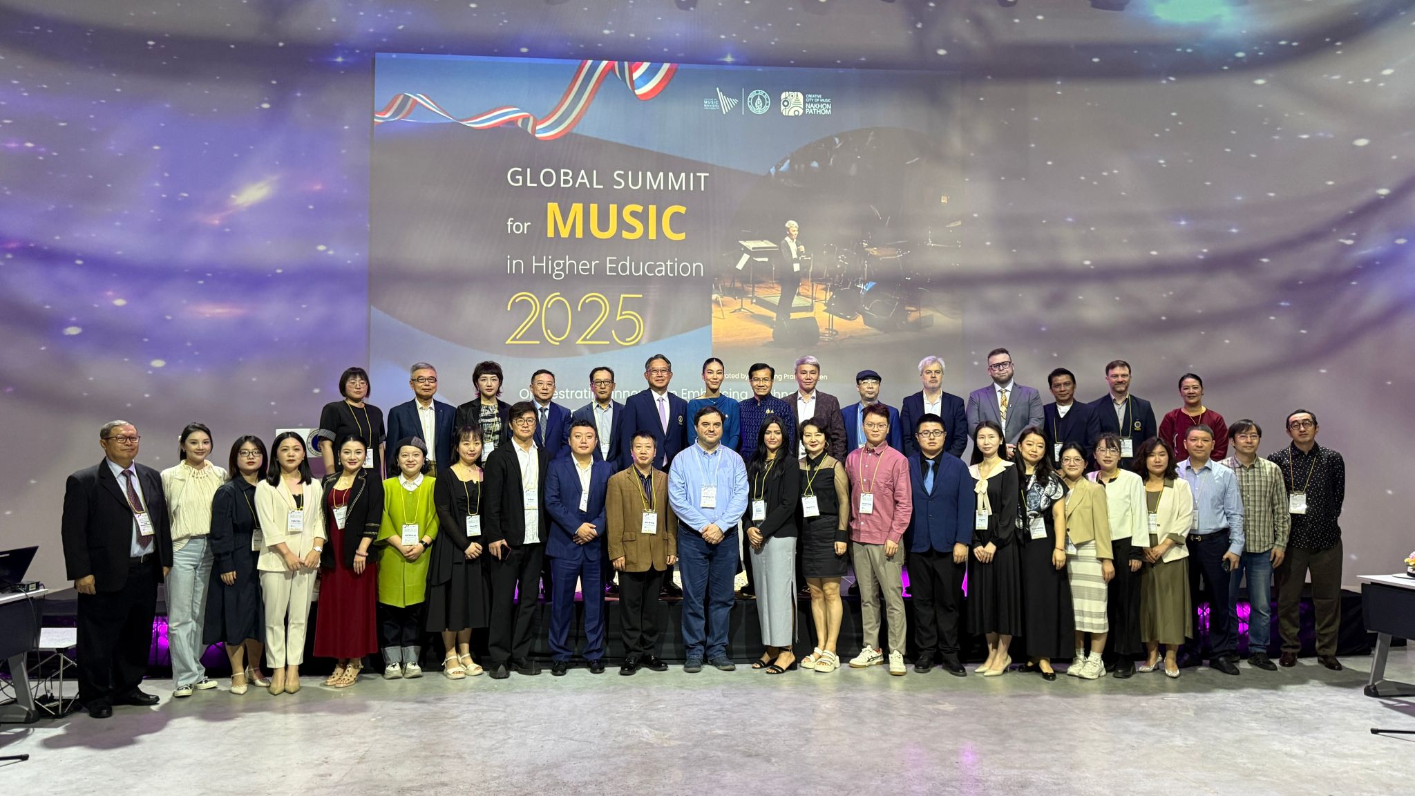 2025年1月14日至17日,受泰国玛希隆大学ky开元集团官网入口之邀,ky开元集团官网入口19位师生赴泰国参加2025年全球高等教育音乐峰会。本次峰会以“编排创新、拥抱技术,塑造音乐教育的未来”为主题,围绕“跨越国界的共鸣”“革新音乐课程工作坊”“讨论未来音乐教育”三大议题展开,重点聚焦全球合作背景下音乐教育机构的发展。