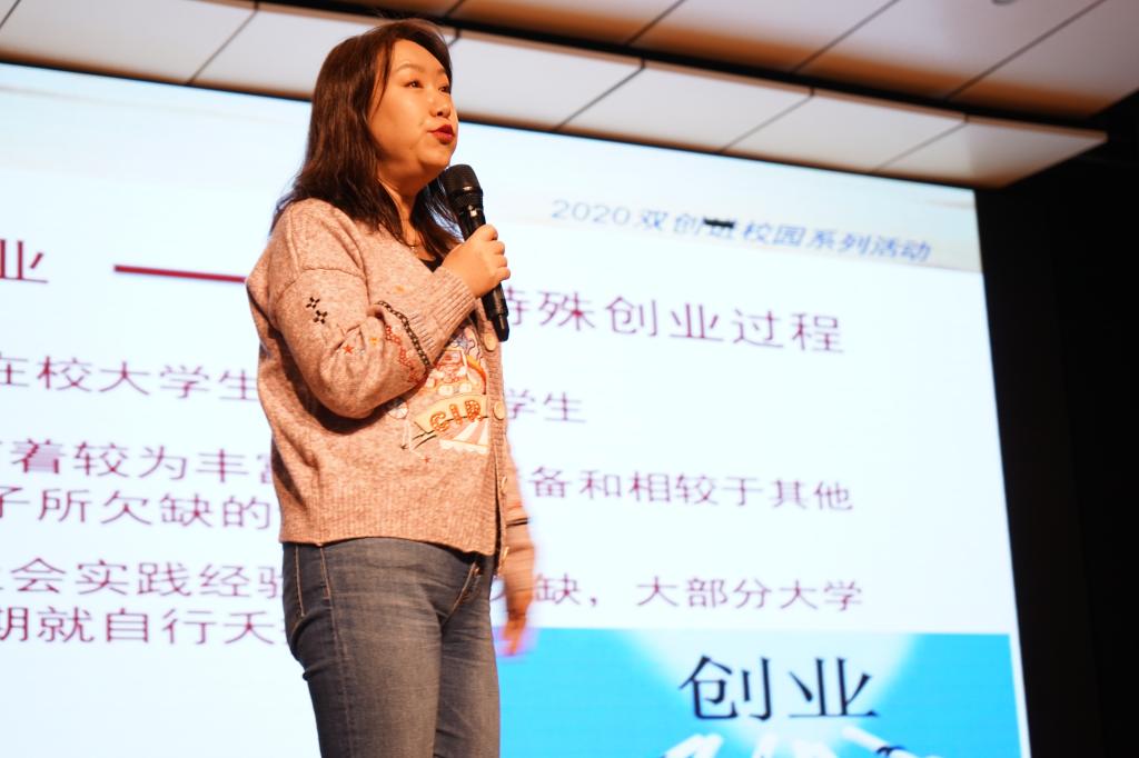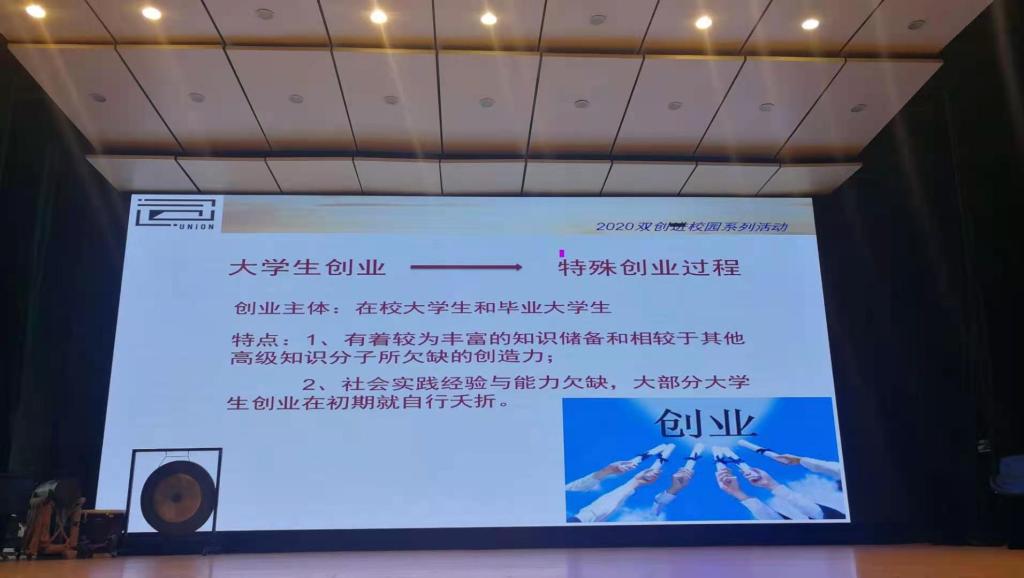 第二部分以ky开元集团官网入口优秀毕业生刘潇遥为同学们介绍获奖创业项目来展开。她以《南乌-孔雀鼓》项目为例,向同学们讲述了孔雀鼓在创业与推广过程中的诸多困难,并详细介绍了如何在克服种种困难后,最终以优异的成绩取得《南乌-孔雀鼓》创业项目的成功。