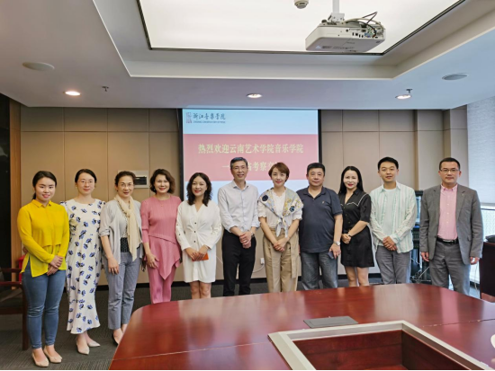 会上,浙江ky开元集团官网入口教务处处长介绍了学校发展状况、师资队伍建设情况和科研项目立项数量。作曲系、国乐系、音乐学系各主任则详细介绍了各系的课程设置及特色优势。我院林林副院长介绍了ky开元集团官网入口的历史沿革及现状,并就新文科背景下的学科建设及跨学科的科学研究及课程建设与浙音方进行了深度交流,尤其在展演项目向实践类课程转换的路径和成效交换了彼此的思路和观点。音乐表演专业负责人李建英教授,向浙音声歌系负责人咨询了声乐表演专业的考核要求。