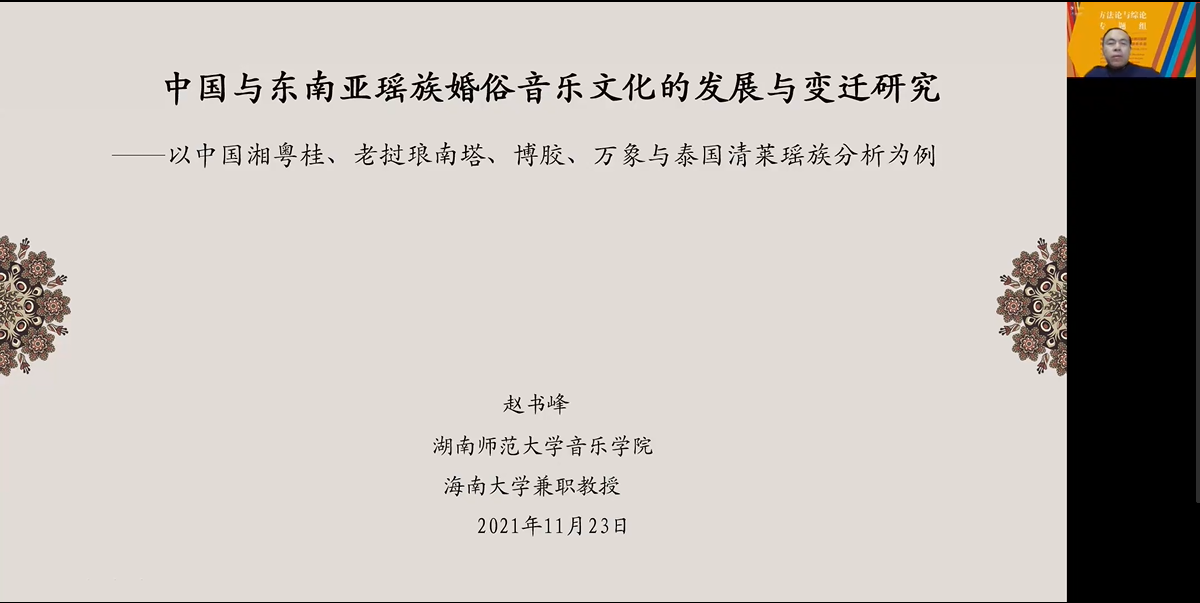 湖南第一师范学校张应华在题为《祖忆与调适----老挝苗族音乐文化演绎的田野叙事》发言中,谈及对此研究对象的研究应用了“线索民族志”的研究方法,在老挝三个苗寨的多点考察和线索追踪中通过人与人、人与乐、人与文化的相遇来“追述”老挝苗族音乐文化的历史记忆及其迁徙线索,同时采用苗族局内人的反观与互视来发现黔西北苗族和老挝苗族同源文化现象在当下的异同。通过多个案例的叙事,虽然老挝苗族的祖先记忆逐渐走向模糊,且无法确认具体的迁徙路线,但还是可以看到老挝苗族的文化体系中祖先记忆仍然占有绝对比重。其研究的思路、方法与观念是一种——走访式田野,以完全局外的观察,沿着迁徙路线的空间追踪与历史追踪,通过录像解读。随后通过四个个案的详细解读,实证性的阐释了其研究思路、研究方法,完成了老挝苗族音乐文化演绎的田野叙事。