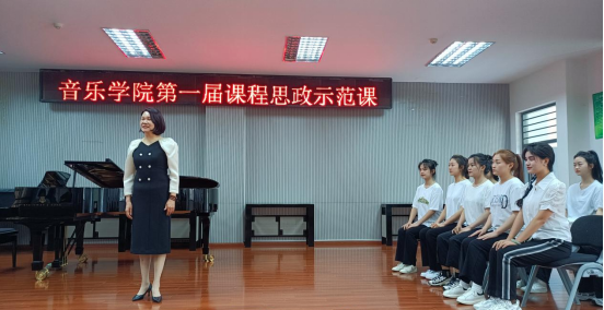 陈红玲老师的演唱主科创新开展了“课堂讲授+视听感悟+课堂讨论+社会实践”的课程思政教学模式,通过提前布置具有思政元素的优秀声乐作品,学生在课堂上反馈时将思政知识渗透到教学当中,使学生对作品背后的情感产生共鸣。此次课程思政示范课以演唱《南湖的船 党的摇篮》为教学内容,将声乐演唱中的“开贴”技能,巧妙地融入到这首作品的情感表达中,探索作品背后的人文情感内涵,从而引出“红船精神”,联系到习近平总书记对广大文艺工作者的期望与嘱托,引发学生对“新时期的年轻一代文艺工作者该如何做?”进行了思考。