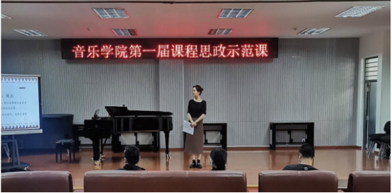 下午有6名教师进行了教学示范,首先是孙芳老师的《中小学音乐教与学》课程,教师引导学生从教学过程设计作品中领悟爱国主义音乐文化精髓,增强学生对中华民族音乐文化的追求与向往,使学生具有传承并发展中华民族音乐文化的使命感。本课程在授课过程中,充分发挥团队教师主力军、课程建设主战场、课程教学主渠道作用,寓价值观引导于知识传授和能力培养之中。