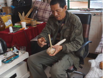 除了在梅葛坊对马游村民间艺人进行访谈和音乐采录外,课题组还前往彝族葫芦笙制作传承人郭自林家中学习如何制作、挑选葫芦苼,并且采录葫芦苼调近20首。