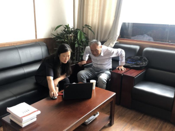图4 苏毅苗教授和双柏彝学会施连会长讨论彝语唱词翻译