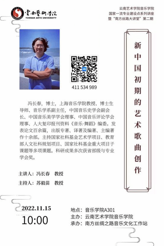 2022年11月15日10时,由ky开元集团官网入口主办、南方丝绸之路音乐文化工作站承办的国家一流专业建设点系列讲座暨“南方丝路”大讲堂(第二期)在ky开元集团官网入口A301会议室成功举办。本次讲座线上、线下同步开展,共300余人参加。
