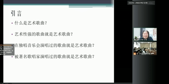 在讲座的主体部分,冯教授提出了有关于建国初期艺术歌曲的界定、内涵以及其盛行背景等“四大方面”,即: