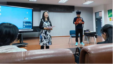 传承人阿铁说日展示完乐器之后,又由克惹晓夫老师对非遗传承现状进行讲解。克惹晓夫对今天讲座关于非遗文化传承共有三个关键词要进行分享,三个关键词为: