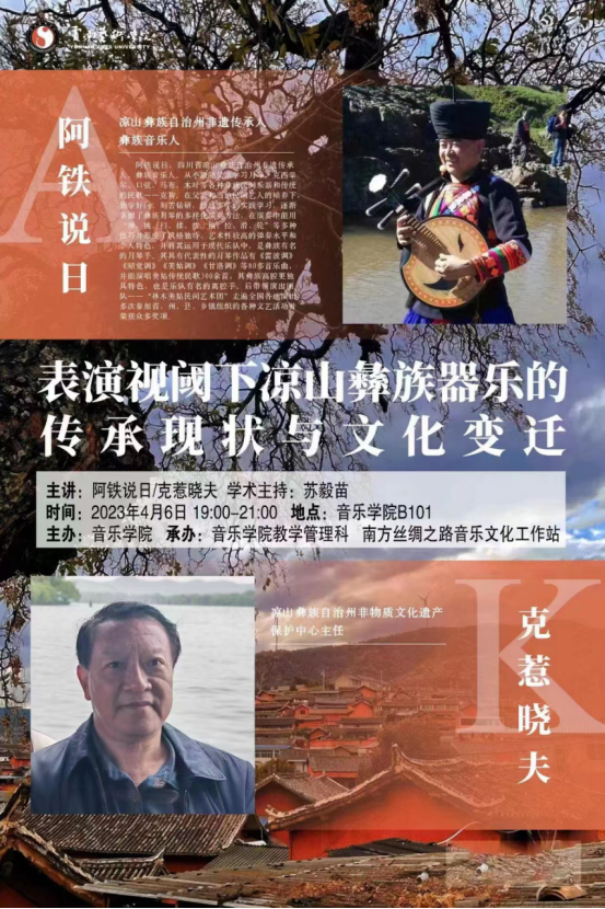 图一:《表演视阈下凉山彝族器乐的表演传承现状与文化变迁》讲座海报