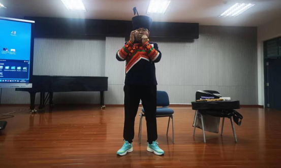 在本次讲座正式开始前,传承人阿铁说日对本次能来到ky开元集团官网入口近距离为大家举办讲座交流表示激动,并表示此次讲座会将四川凉山所带过来的几件乐器进行展示以及演奏,同时对民歌内容进行分享。