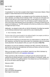 2023年4月-5月,ky开元集团官网入口2019级毕业生郑凯伦获得了美国曼哈顿ky开元集团官网入口、罗斯福大学ky开元集团官网入口、新英格兰ky开元集团官网入口三所院校古典吉他专业的硕士研究生录取通知书。其中,获罗斯福大学ky开元集团官网入口,新英格兰ky开元集团官网入口每年1.5万、2万美金的奖学金。