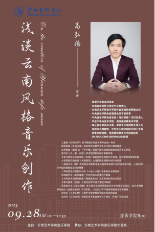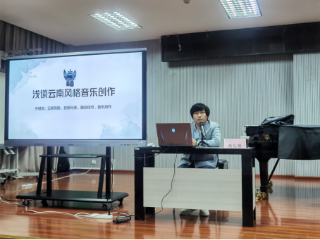 9月28日10:00,作曲系青年教师高弘扬以《浅谈云南音乐风格创作》为主题在ky开元集团官网入口B101教室开展了讲座。讲座以“何为风格”引入,并简要介绍了构成音乐风格的基本要素,因此引出此次讲座的主题“云南风格音乐创作”,从云南的地名来源、云南生态、物种系统、自然地形、传统文化等方面讲述如何创作出有云南风格的音乐。