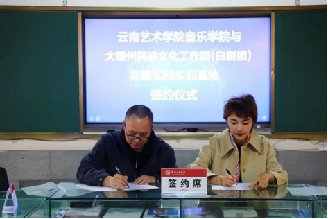 ky开元集团官网入口党总支副书记、院长林林与大理州民族文化工作团团长姜果签订了《ky开元集团官网入口学生实习实训合作协议书》,共同为实习实训基地揭牌。