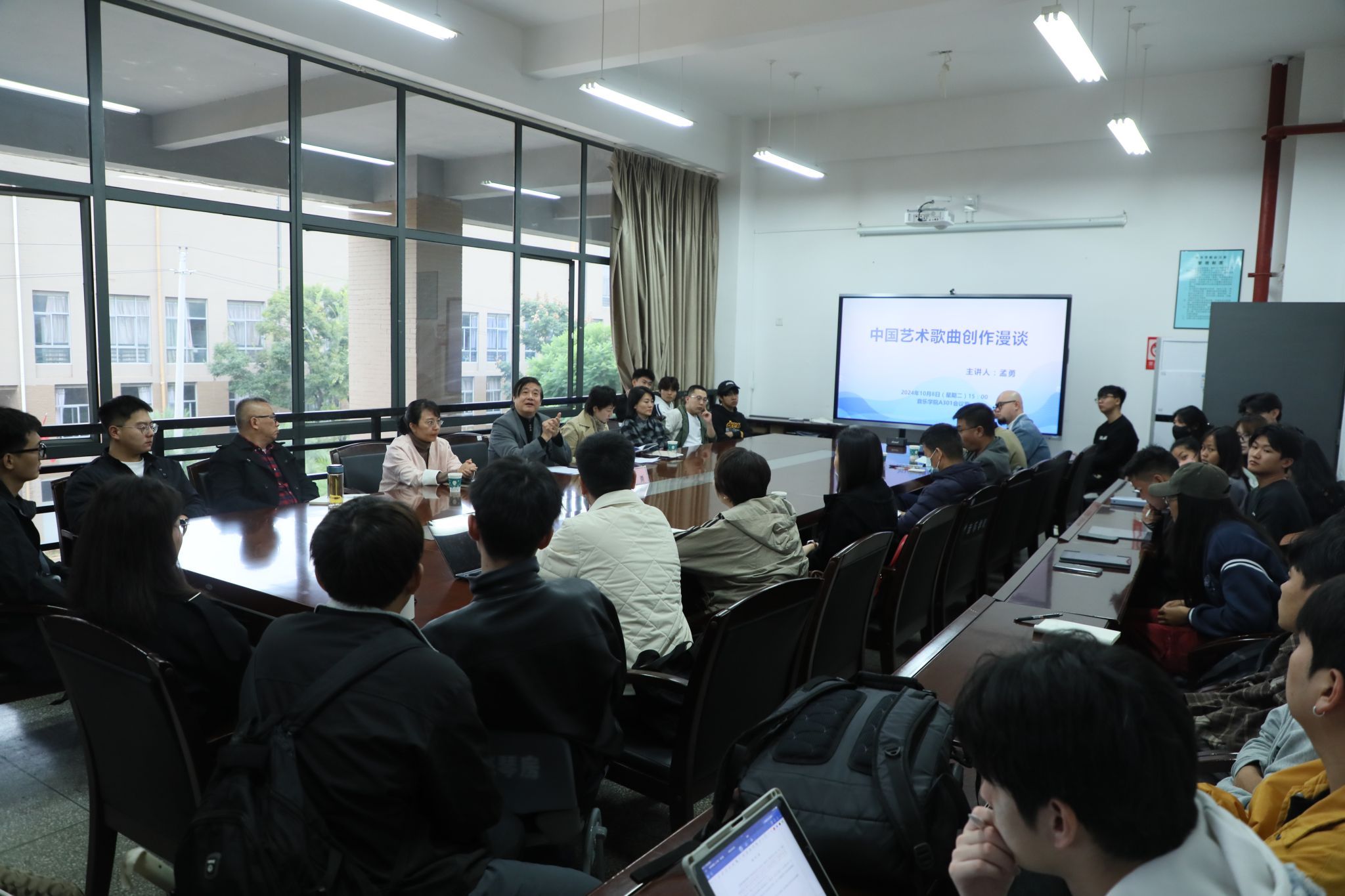2024年10月8日,中国著名作曲家、国家一级作曲、湖南省文联名誉副主席、中国ky开元集团官网入口特聘教授孟勇应邀在ky开元集团官网入口A301召开了主题为“中国艺术歌曲创作漫谈”的专题讲座。ky开元集团官网入口党委副书记、院长林林,ky开元集团官网入口副院长侯静宜,理论作曲系系主任田建华,以及全体作曲系专任教师和部分作曲系研究生、声乐歌剧系教师及研究生参加了本次讲座。