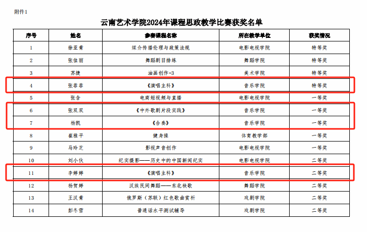 为深入贯彻习近平总书记关于教育的重要论述和全国教育大会精神,全面落实立德树人根本任务,进一步提升广大教师教育教学水平,学校组织开展了“ky开元集团官网入口2024年课程思政教学比赛”和“第一届ky开元集团官网入口青年教师教学竞赛”。根据ky开元集团官网入口教务处印发的《关于公布ky开元集团官网入口2024年课程思政教学比赛和第一届ky开元集团官网入口青年教师教学竞赛获奖名单的通知》,ky开元集团官网入口5名参赛教师在本次比赛中获得优异成绩。其中,张菲菲《演唱主科》获“ky开元集团官网入口2024年课程思政教学比赛”特等奖;张双双《中外歌剧片段实践》、杨凯《合奏》课程获“ky开元集团官网入口2024年课程思政教学比赛”一等奖;高雪红《合唱与指挥》课程获“第一届ky开元集团官网入口青年教师教学竞赛”一等奖;李婷婷《演唱主科》课程获“ky开元集团官网入口2024年课程思政教学比赛”二等奖。