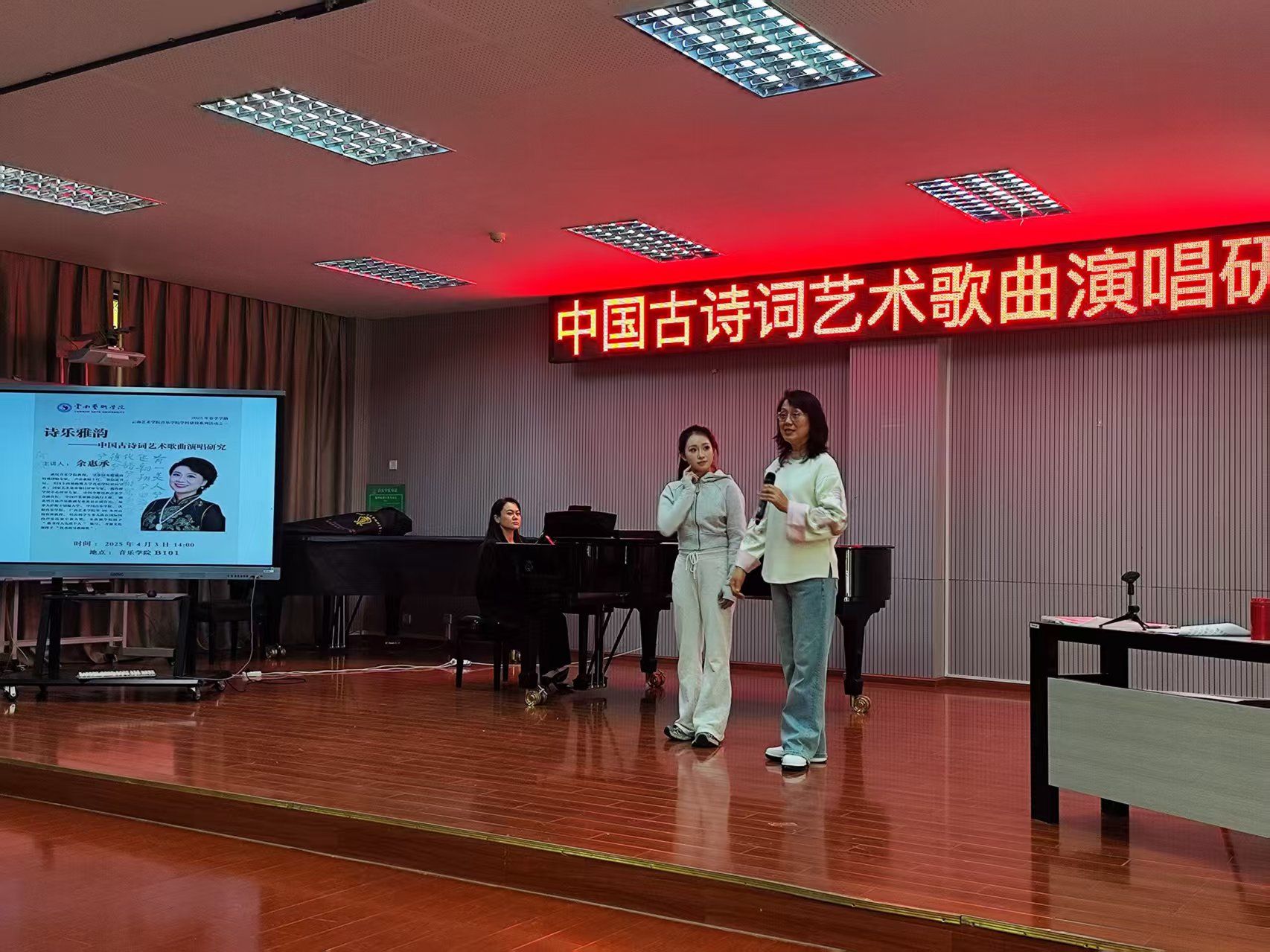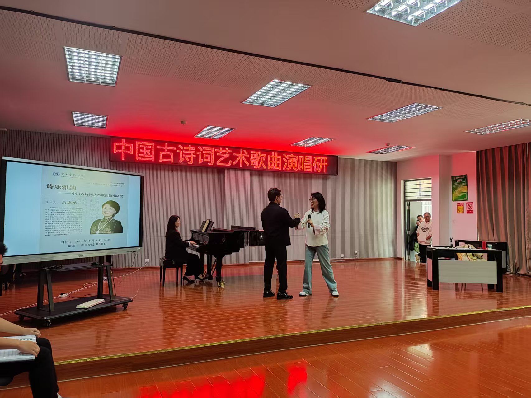 2025年4月3日,ky开元集团官网入口举办《诗乐雅韵——中国古诗词艺术歌曲演唱研究》学术讲座,本场讲座由武汉ky开元集团官网入口教授、国家艺术基金项目评审专家、教育部学位中心评审专家、中国少数民族声乐学会副会长、中国声乐家协会执行主席余惠承教授主讲,ky开元集团官网入口民族声乐系系主任陈红玲教授主持,ky开元集团官网入口院长林林教授及部分师生参加。