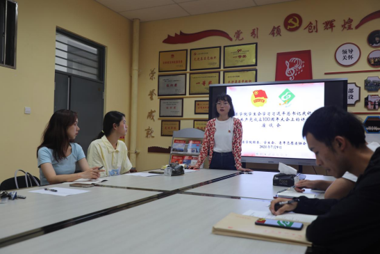 根据共青团ky开元集团官网入口委员会《关于召开学习贯彻习近平总书记在庆祝中国共产党成立 100 周年大会上重要讲话精神座谈会的通知》要求,ky开元集团官网入口团委组织部分团学骨干、团员青年代表预计30余人于2021年7月9日15:00,在ky开元集团官网入口B106会议室召开了学习习近平总书记在庆祝中国共产党成立100周年大会上的重要讲话精神座谈会。本次会议由ky开元集团官网入口团委副书记李青老师主讲。