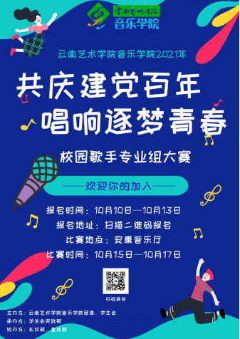 2021年中国共产党成立100周年之际,“十四五”规划开局之年,也是全面建成小康社会、开启全面建设社会主义现代化国家新征程的关键之年。为营造积极向上、多姿多彩的校园文化氛围,共庆建党百年,讴歌新时代,充实我院学生课余文化生活,充分发挥和展示ky开元集团官网入口学生专业水平,由ky开元集团官网入口团委主办的“共庆建党百年 唱响逐梦青春”校园歌手专业组比赛于10月15日-16日在安康音乐厅举行,比赛分为美声组、民族组、流行组。