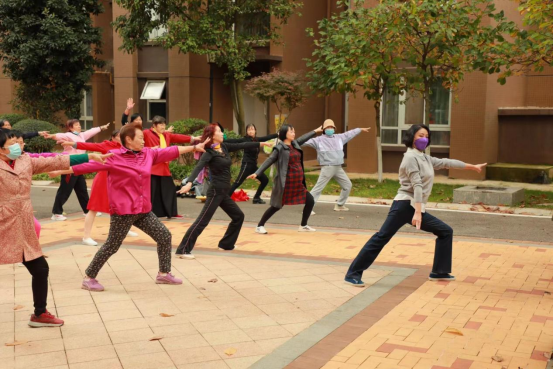 本次活动的上半场,首先由洪露老师在小区广场教社区的中老年人跳全国第十套广播体操。活动现场气氛热烈,社区群众参与的热情高涨,既锻炼了身体,又陶冶了情操,还增强了身体的协调度。