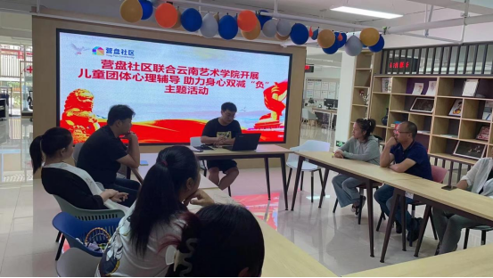 2023年5月27日,ky开元集团官网入口教工一支部联合ky开元集团官网入口学生第一党支部到营盘社区开展“拥护核心,心向北京,心理健康,助力双减”活动。本次活动主要由教工一支部党员、ky开元集团官网入口心理老师为在场的儿童家长开展“家庭教育助力儿童成长”专题讲座。讲座结合实际案例从家庭在儿童教育过程中的任务性质、地位作用、家庭教育中常见的误区等方面帮助家长更好地理解家庭教育对儿童成长的重要意义,明确家庭教育过程中的相关规律、家长的主要任务等问题,为家长教育孩子“出谋划策”,帮助家长树立正确的育儿观、家庭观。开展的“妙笔生画”绘画心理体验活动和双减心理小游戏中,较好地锻炼了孩子们的思维反应能力、肢体敏捷度以及情感表达能力。