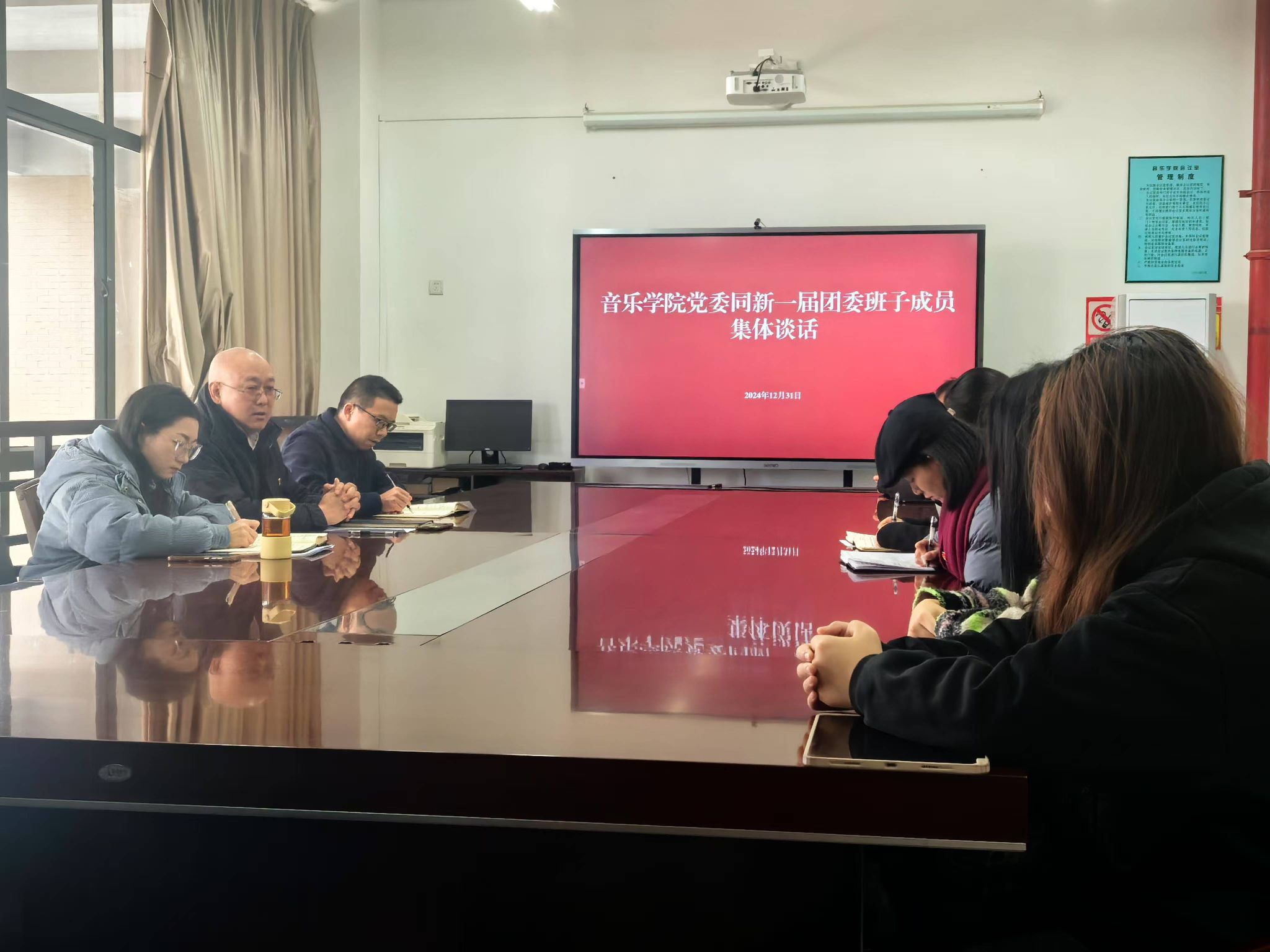 2024年12月31日上午,ky开元集团官网入口党委与新一届团委委员集体谈话在A301会议室举行,学院党委书记童汝全,党委副书记、纪委书记肖本俊,党委委员、专职组织员李青以及ky开元集团官网入口新一届团委委员参加会议,会议由肖本俊副书记主持。
