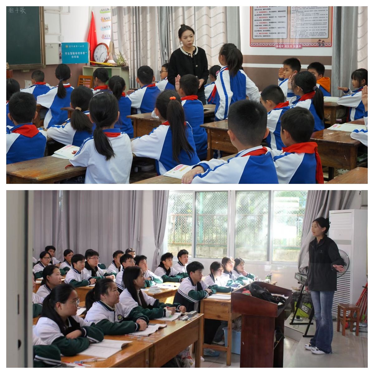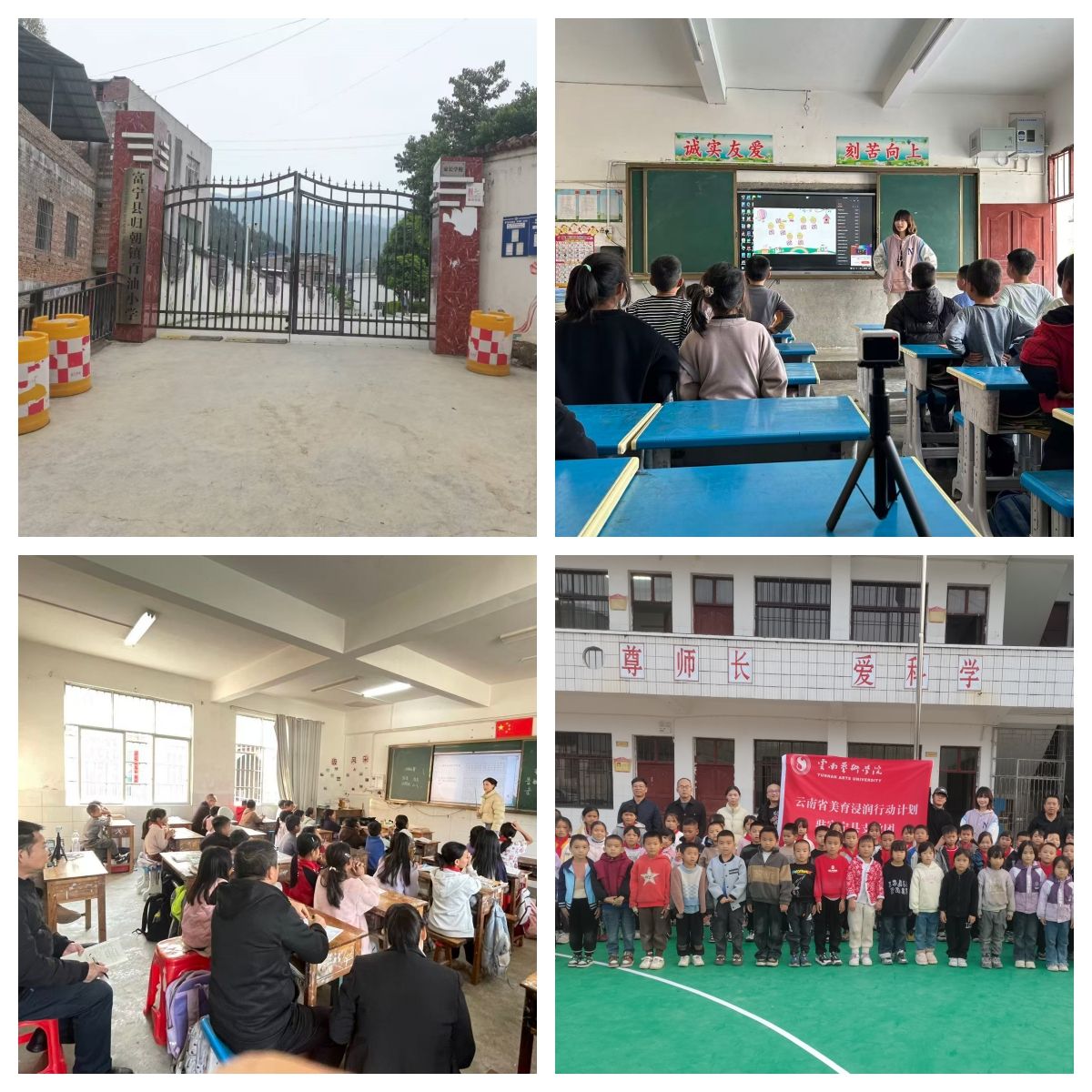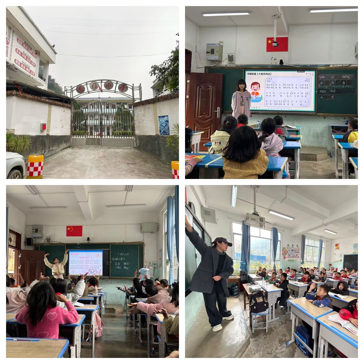 12月初,ky开元集团官网入口团队赴富宁县归朝镇龙门小学、百油小学再次开展巡课送教,团队成员沈于童为一年级同学们带来了“大家来劳动”的歌曲课堂,讲述了幸福来源于劳动的人生道理,课堂条理清晰、脉络分明,同时声情并茂、充满童趣;李垚垚为二年级同学带来了“快乐的小笛子”,结合歌曲引入了乐器认知,基础乐理,体态律动手势舞等内容,课堂中讲、唱、动的有机结合也吸引在场听课老师们纷纷拍照记录;陈舞为四年级同学们带来了“幸福拍手歌”,他带领学生们回归音乐基础,课堂循序渐进张弛有度,引入的盲盒奖励机制,充分提升了学生的课堂参与度与配合积极性。巡课送教活动深入乡镇一线,回应了当地同学对美育课程的深切渴望,助力同学们更好地理解和热爱音乐艺术,团队成员也在工作中切身感受了基层的真善美,实现了双向浸润。