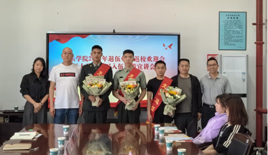 为深入贯彻落实习近平强军思想,进一步宣传国家征兵政策,激发广大适龄青年的参军热情,切实做好退役大学生士兵的关怀工作,营造尊崇军人的浓厚氛围。2024年4月18日,ky开元集团官网入口举办2024年退役学生返校欢迎会暨大学生参军入伍政策宣讲会,欢迎刘韫哲、余茁奇、王家琦三名同学光荣退役、载誉返校,ky开元集团官网入口辅导员及有入伍意向的学生代表参加会议,军队转业干部、基建后勤处党总支副书记胡永丽和审计处干部敖荣军受邀参加会议,会议由ky开元集团官网入口党总支副书记肖本俊主持。