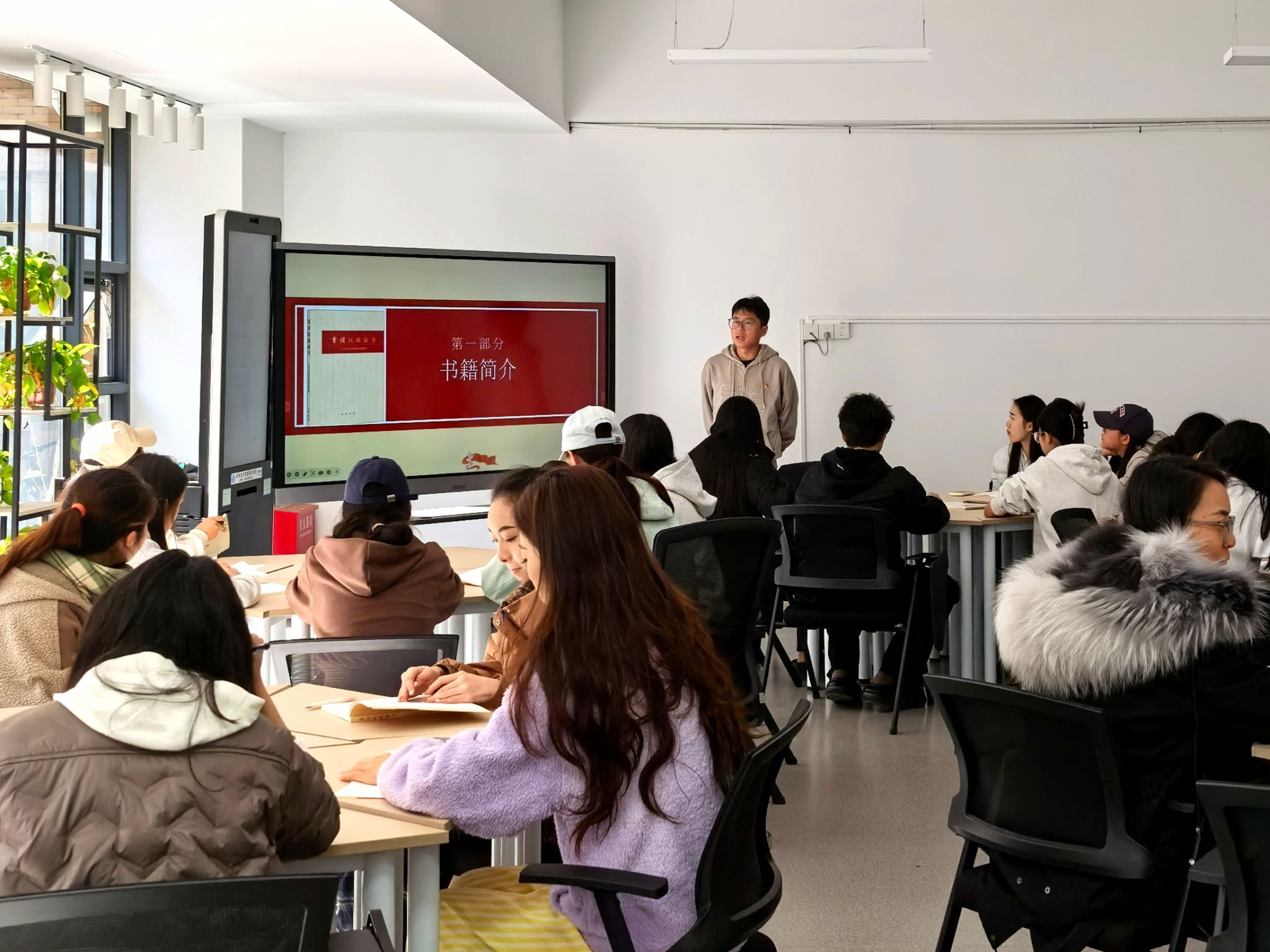 活动以杨天为老师导读为始,他对书籍进行了简要介绍并指出,当下重读这些浸润着血泪与信仰的文字,不仅是为了缅怀,更是为了以史为鉴,清醒认识历史真相,坚决驳斥一切美化侵略、歪曲历史的错误言行,从中汲取不屈不挠、自强不息的民族精神力量。随后,五位学生代表现场深情诵读了吉鸿昌、左权、赵一曼等英烈的红色家书,以声音还原历史场景,剖析字里行间的爱国赤诚与民族气节。